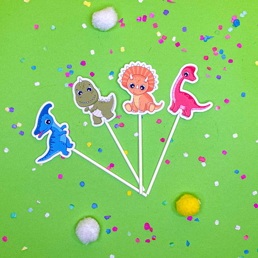Roaring Dino Cupcake Toppers (Set of 12 Dinosaur Toppers)