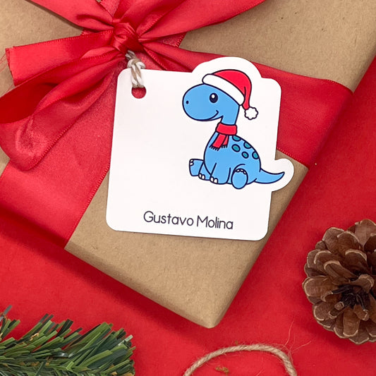 Dinosaurs and Christmas Gift Tags (Set of 12 Holiday Dino Tags)