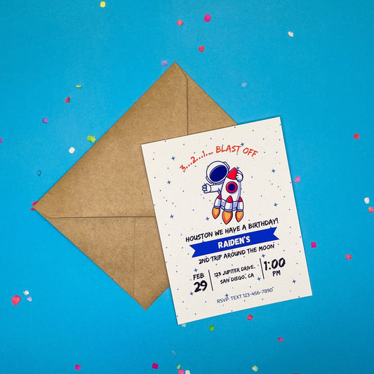Blast Off Astronaut Birthday Invitations (Set of 12 with Envelopes)