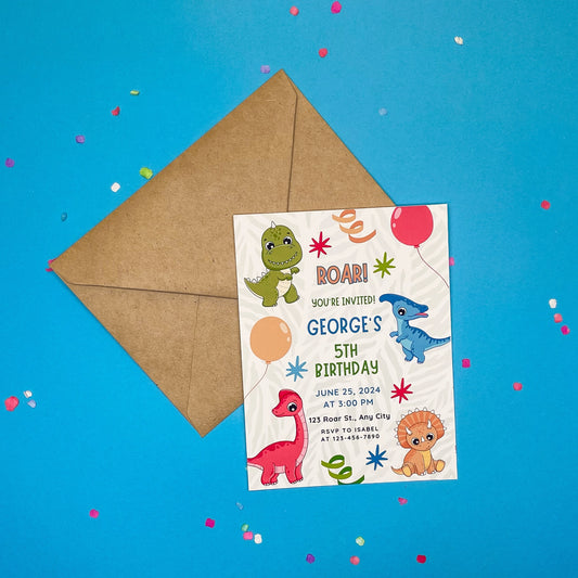 Dinosaur Adventure Birthday Invitations (Set of 12 with Envelopes)