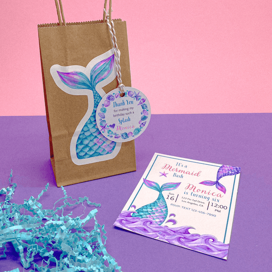 Mermaid Personalized Birthday Invitations (Set of 12 Ocean-Themed Invitations)