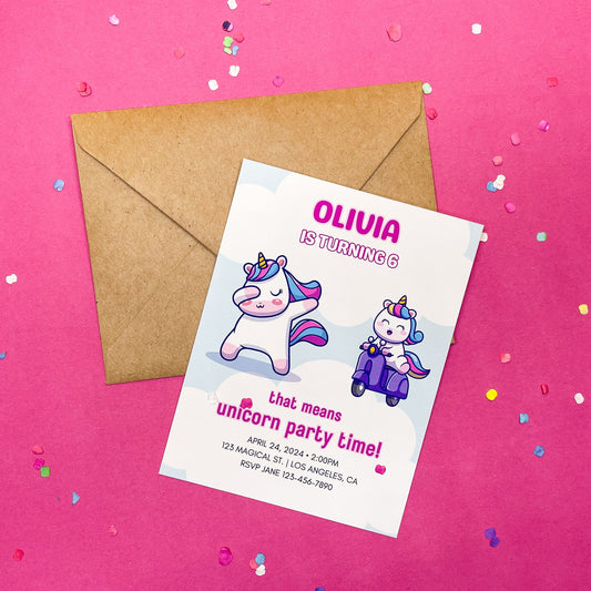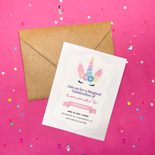 Sweet Unicorn Personalized Birthday Invitations (Set of 12 Magical Invitations)